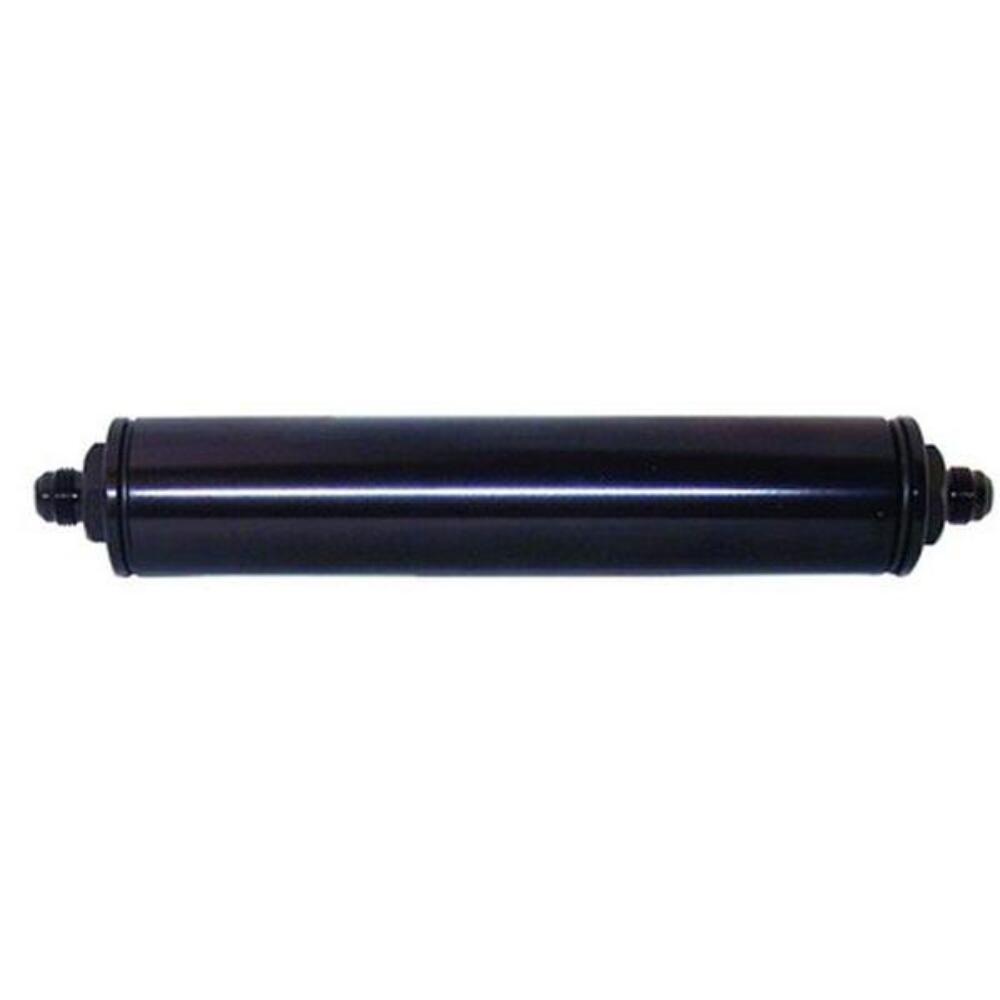 Fuel Filter, Inline Mount, Billet Aluminum, Black Anodized, 100 Microns, -10 AN Inlet/Outlet, Each