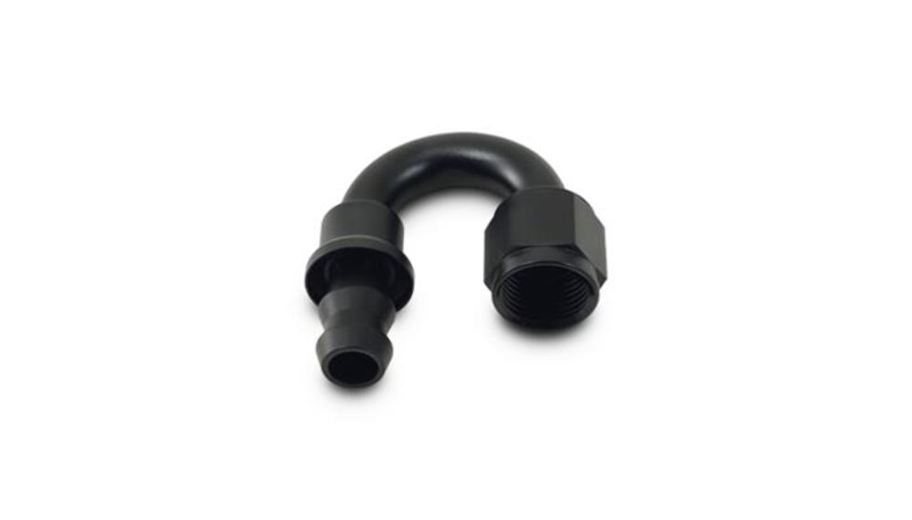 Fitting, Hose End, 180 Degree, -4 AN Female Threads, Aluminum, Black Anodized, Each