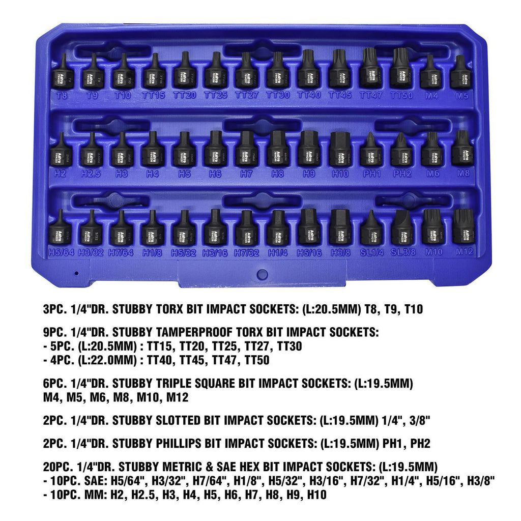 42pc 1/4'' Drive Low Profile Nano Impact Bit Socket Set
