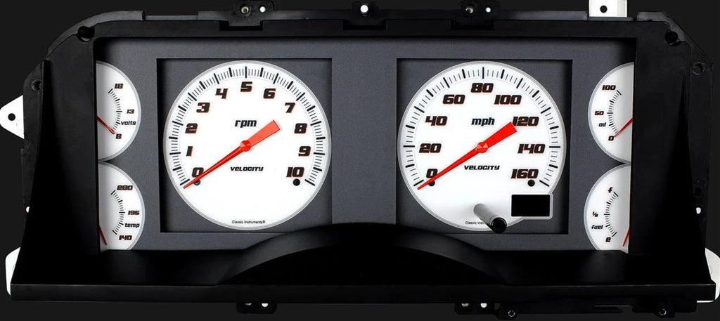 Gauges, OE Style, Speedometer, Tach, Water Temperature, Fuel Level, Voltage, Oil Pressure, Velocity White Face, Analog, Ford, Set