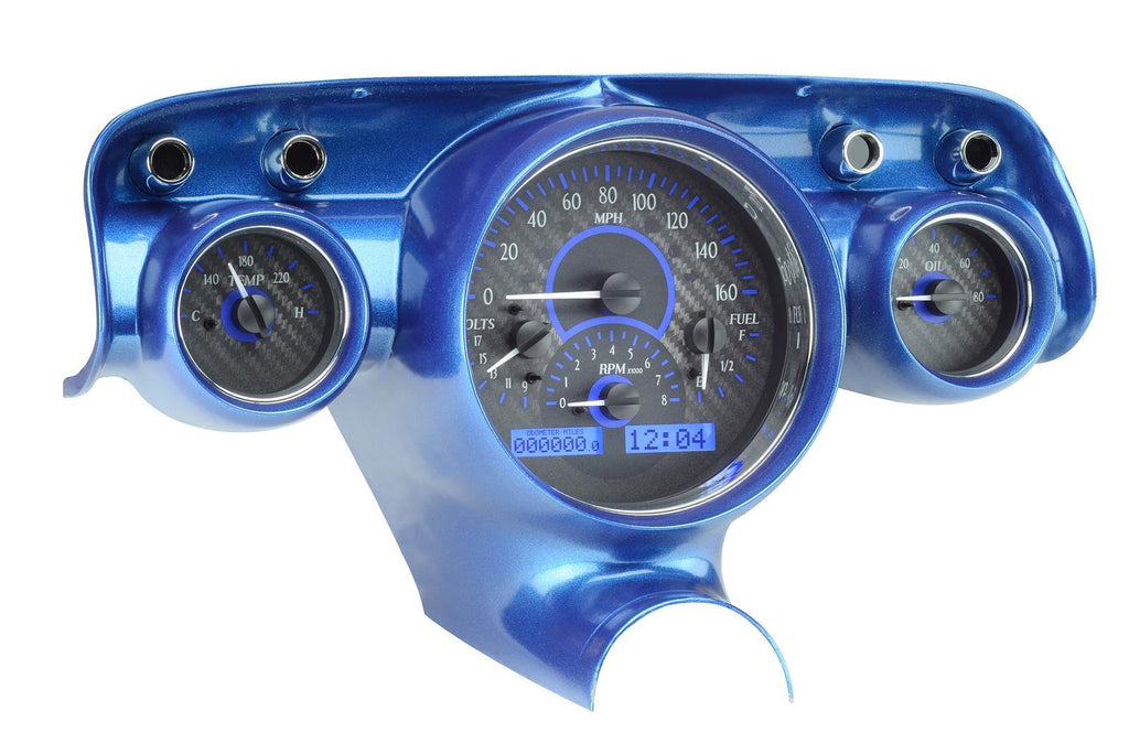 Gauge Kit, Direct Fit, VHX, Analog, Carbon fiber Face, White/Blue Illuminated Numbers, White/Blue Illuminated Pointer, Chevy, Kit
