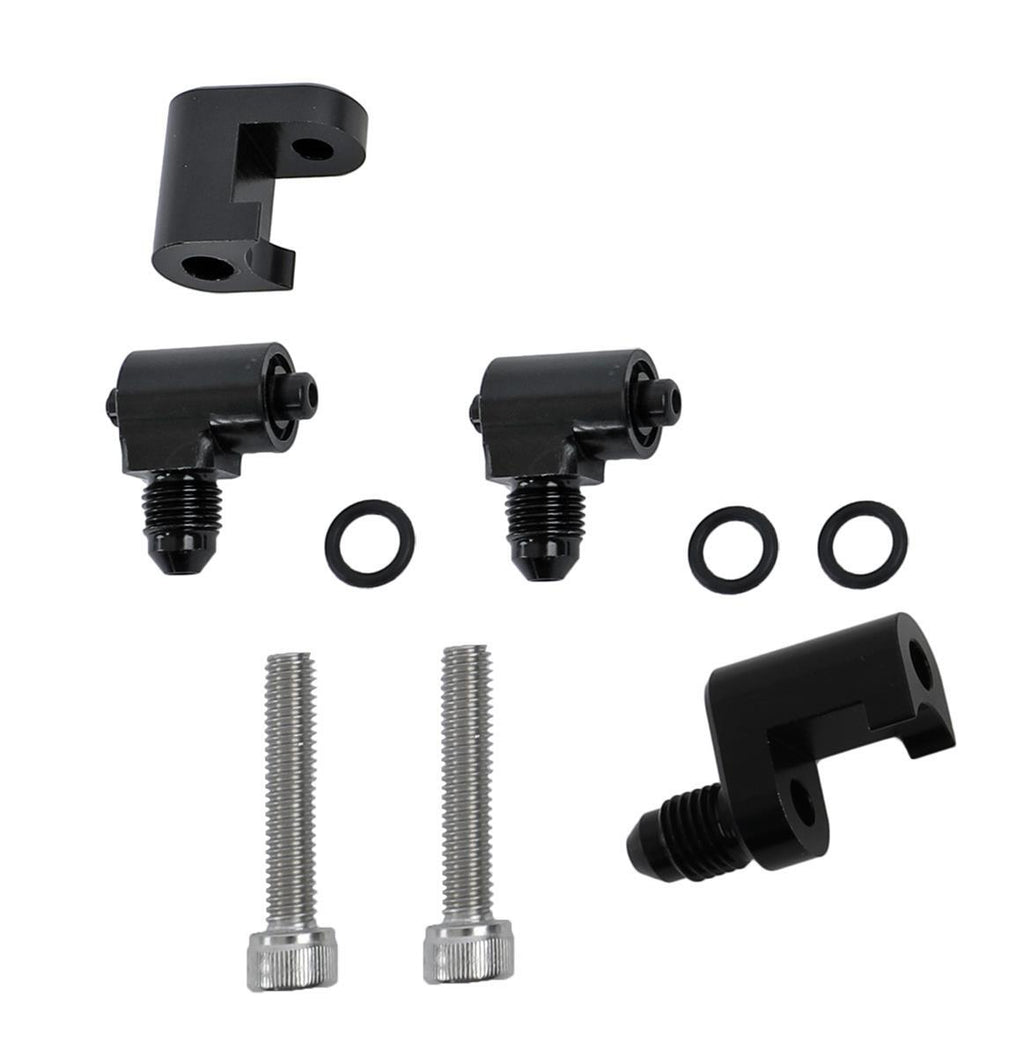 Coolant Crossover Components, LS Steam Vent Adapters, -4 AN, One Single Outlet Adapter, One Dual Outlet Adapter, Aluminum, Black Anodized, Chevy, Set