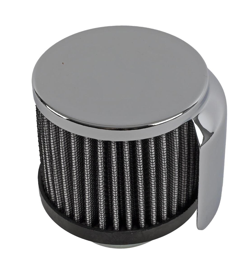 Valve Cover Breather, Clamp-On, Round, Steel, Chrome with Shield, 1.5 in. Inlet, Each