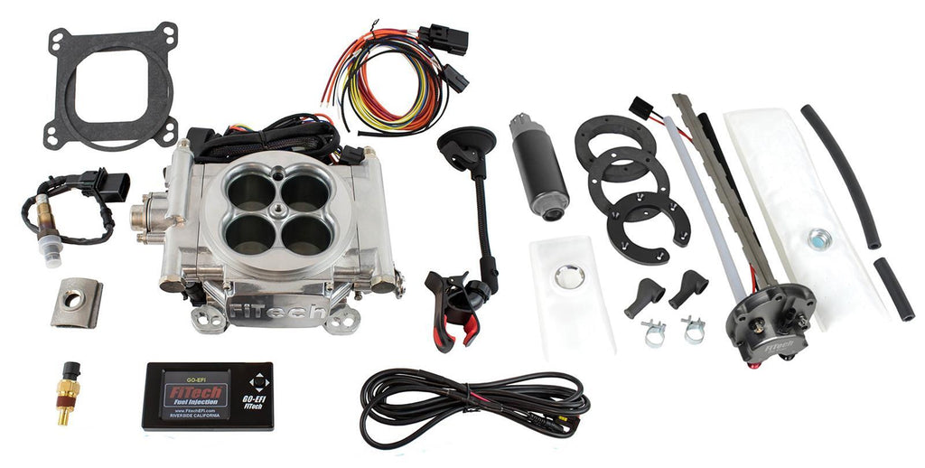 Fuel Injection System, Go EFI 4, Throttle Body, Go Fuel In-Tank Fuel Pump Module, Wiring Harness, Hardware, Bright Aluminum Finish, Kit