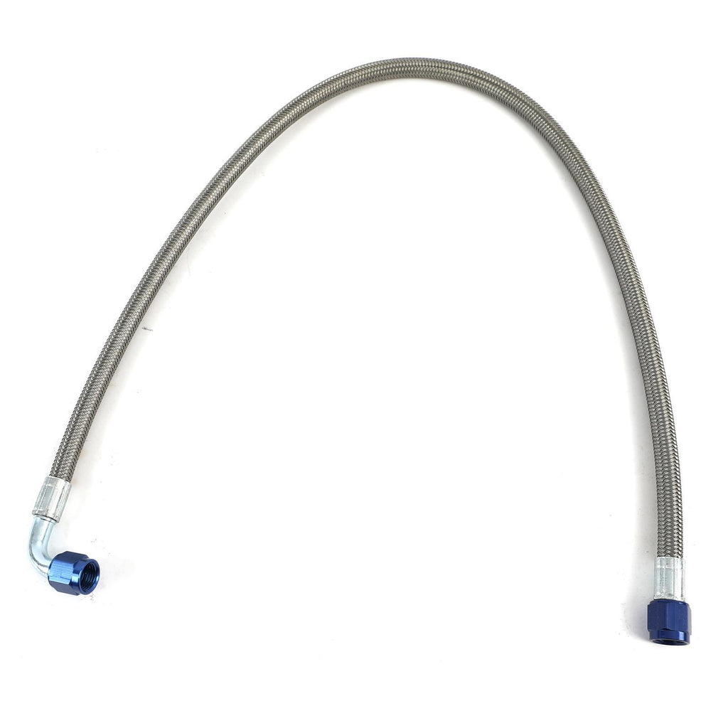 Hose, P.T.F.E, Braided Stainless Steel, 90 Degree, 30 in., -6 AN Female, -6 AN Female, Each