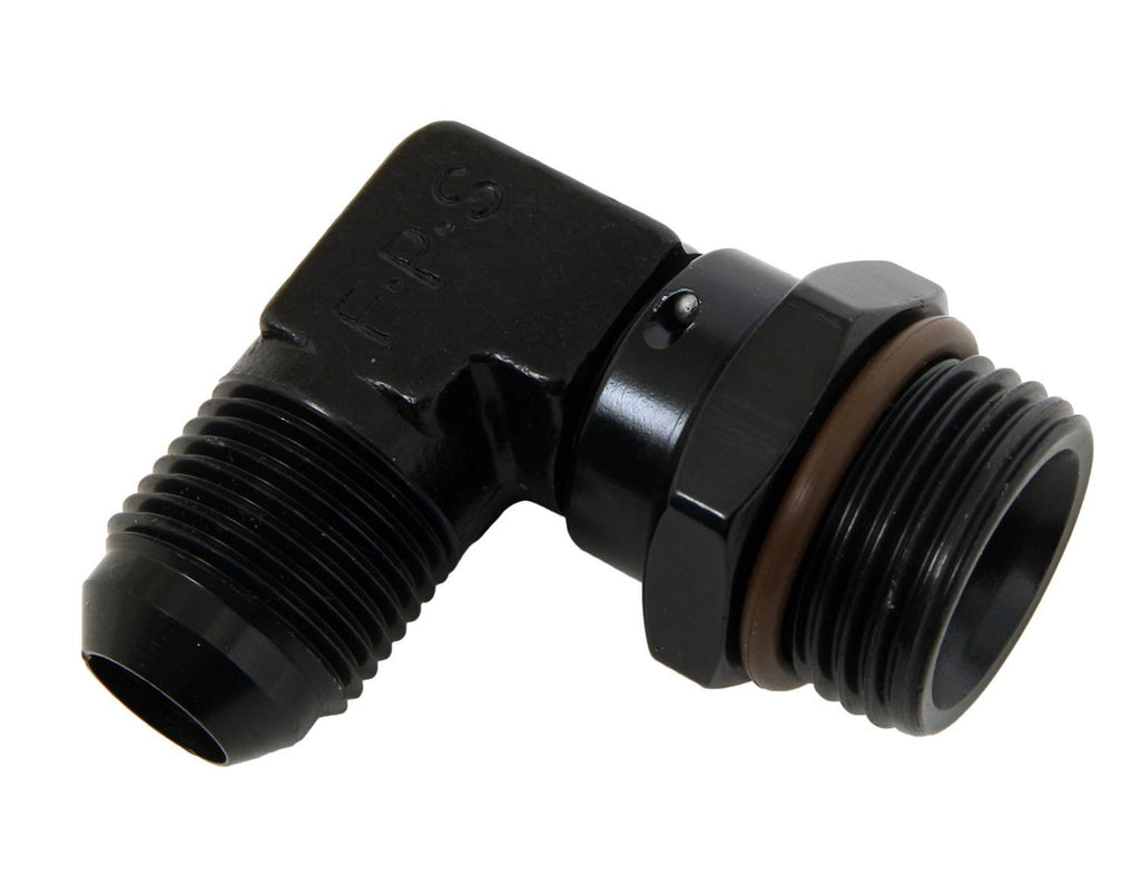 Fitting, Adapter, AN to Straight Cut, 90 Degree, Aluminum, Black Anodized, -10 AN, -12 AN, Swivel, Each
