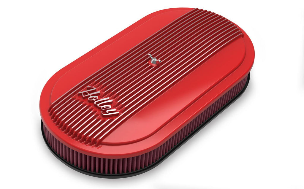 Air Cleaners, Vintage Series, 17 in. x 9 in., 5.125 in. Single Carburetor Neck, Machined Fin Top, Cotton Gauze Filter, Aluminum, Gloss Red, Each