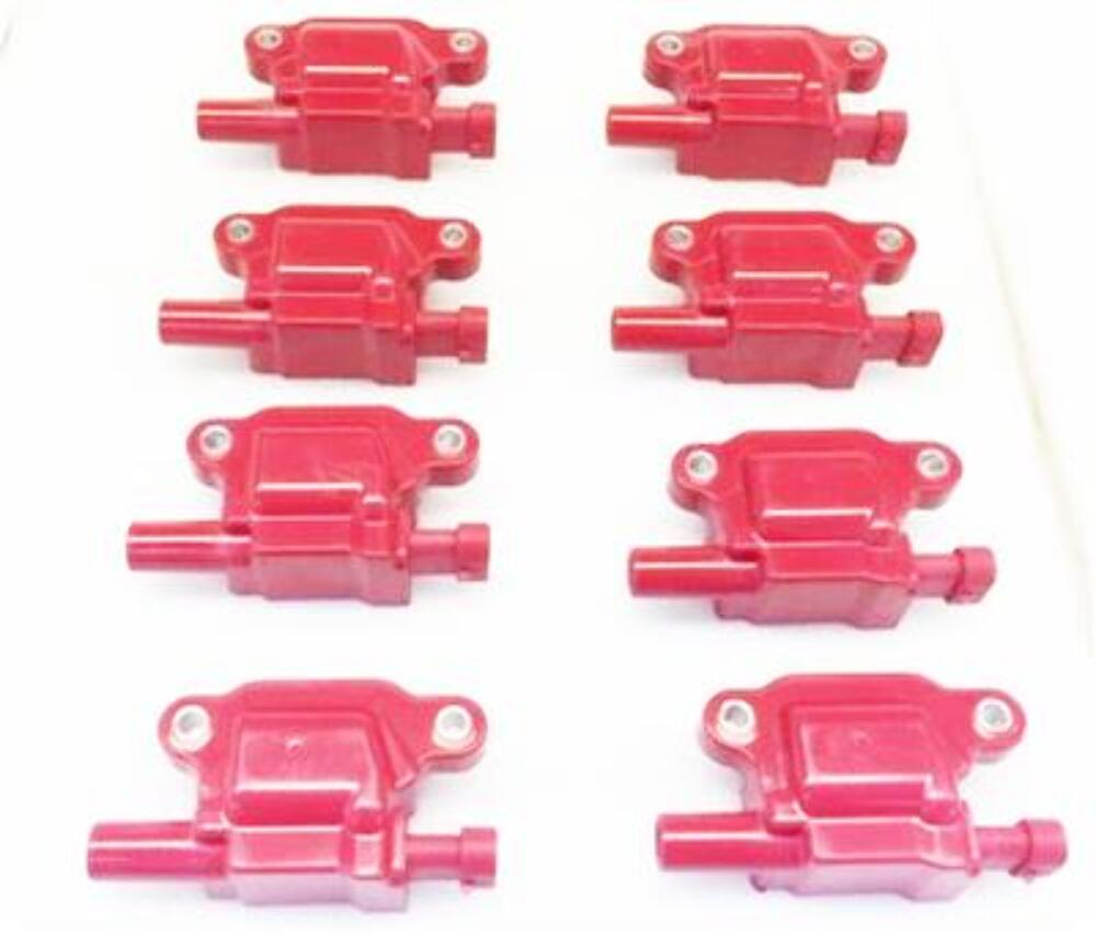 Ignition Coils, Coil Pack, Epoxy, Square, Red, LS, V8, Buick, Cadillac, Chevy, GMC, Hummer, Pontiac, Set of 8