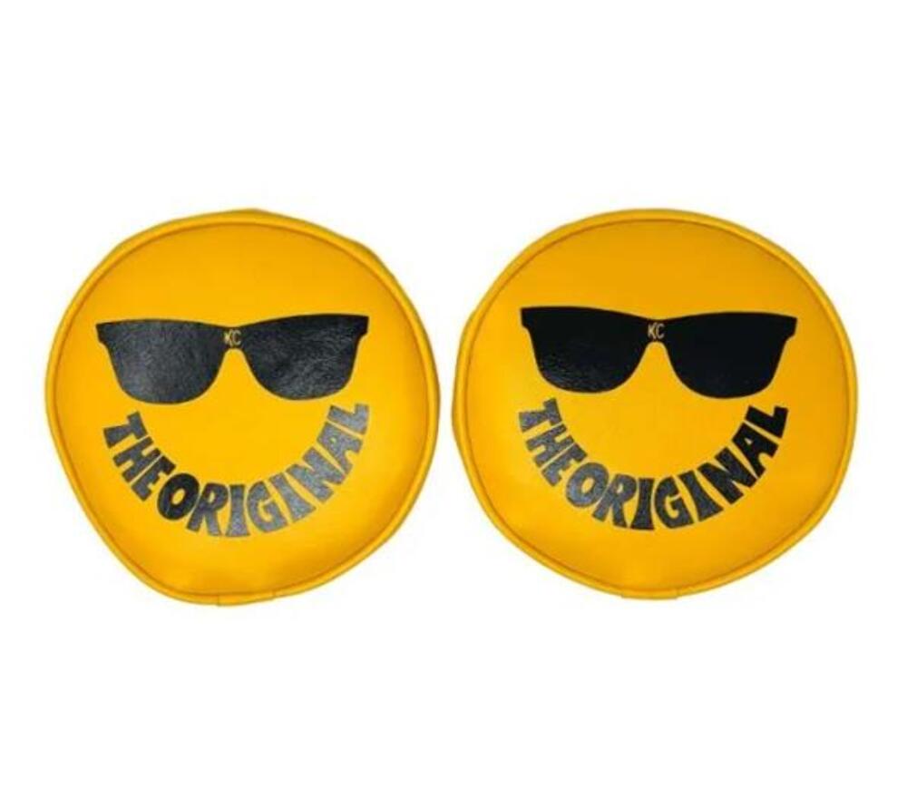 Light Covers, Round, 6 in. Diameter, Vinyl, Yellow/Black, Sunglasses Daylighter Logo, Pair