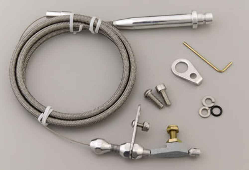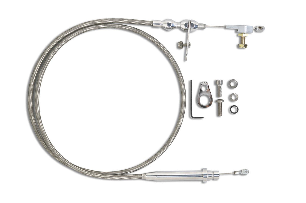 Automatic Transmission Kickdown Cable, Hi-Tech, Natural Braided Stainless Steel, Polished Aluminum Fittings, GM, TH350, Kit