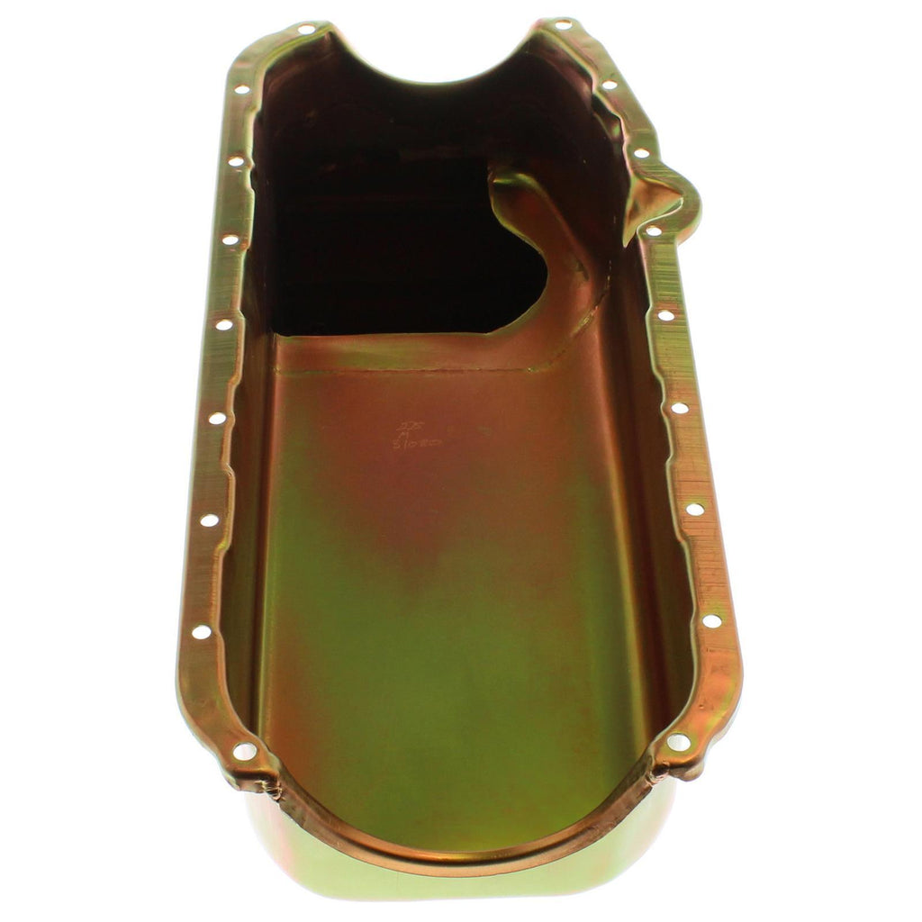 Oil Pan, Steel, Gold Iridite, 5 qt., Chevy, Small Block, LH Dipstick, Chevy, Pickup, SUV, Each