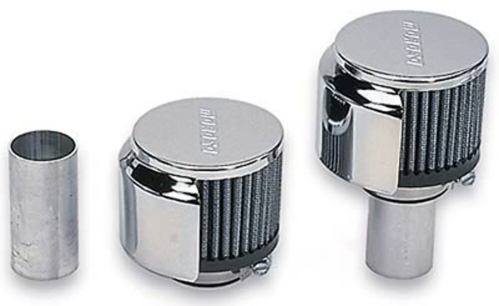 Valve Cover Breathers, Weld-In, Clamp-On, Round, Steel/Rubber, Chrome/Black, Moroso Logo, Pair