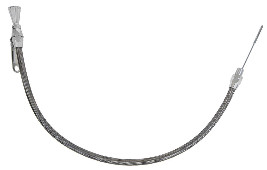 Engine Oil Dipstick, Flexible, Oil Pan Entry, Billet Aluminum, Brite Anodized, 24 in. Length, Universal, Each