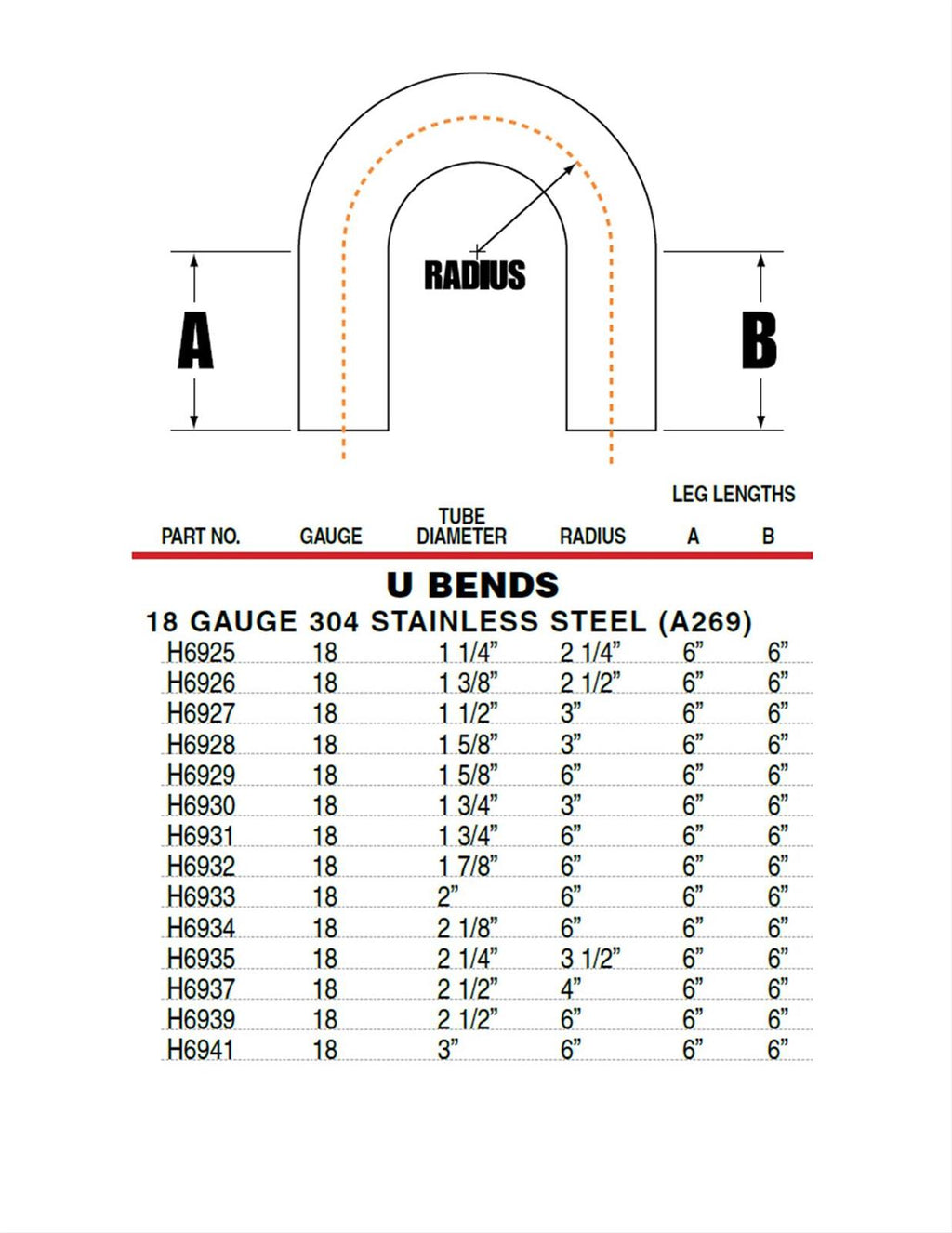 Exhaust Tubing, 180 Degree, Mandrel U-Bend, 3 in. Diameter, 6 in. Radius, 18-Gauge, Stainless Steel, Each