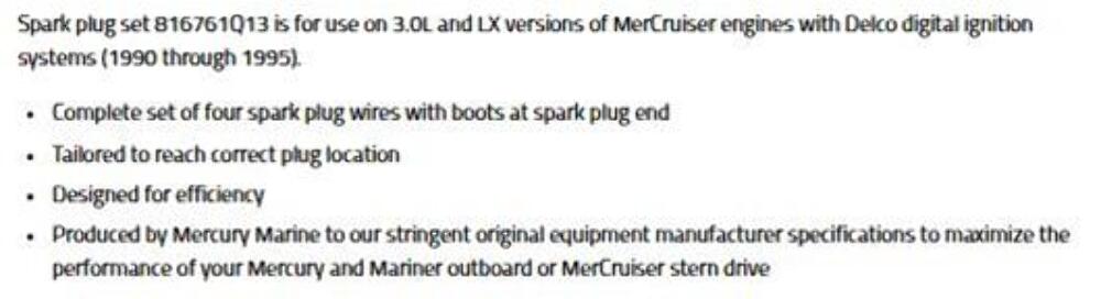 Quicksilver 816761Q13 Spark Plug Wire Set