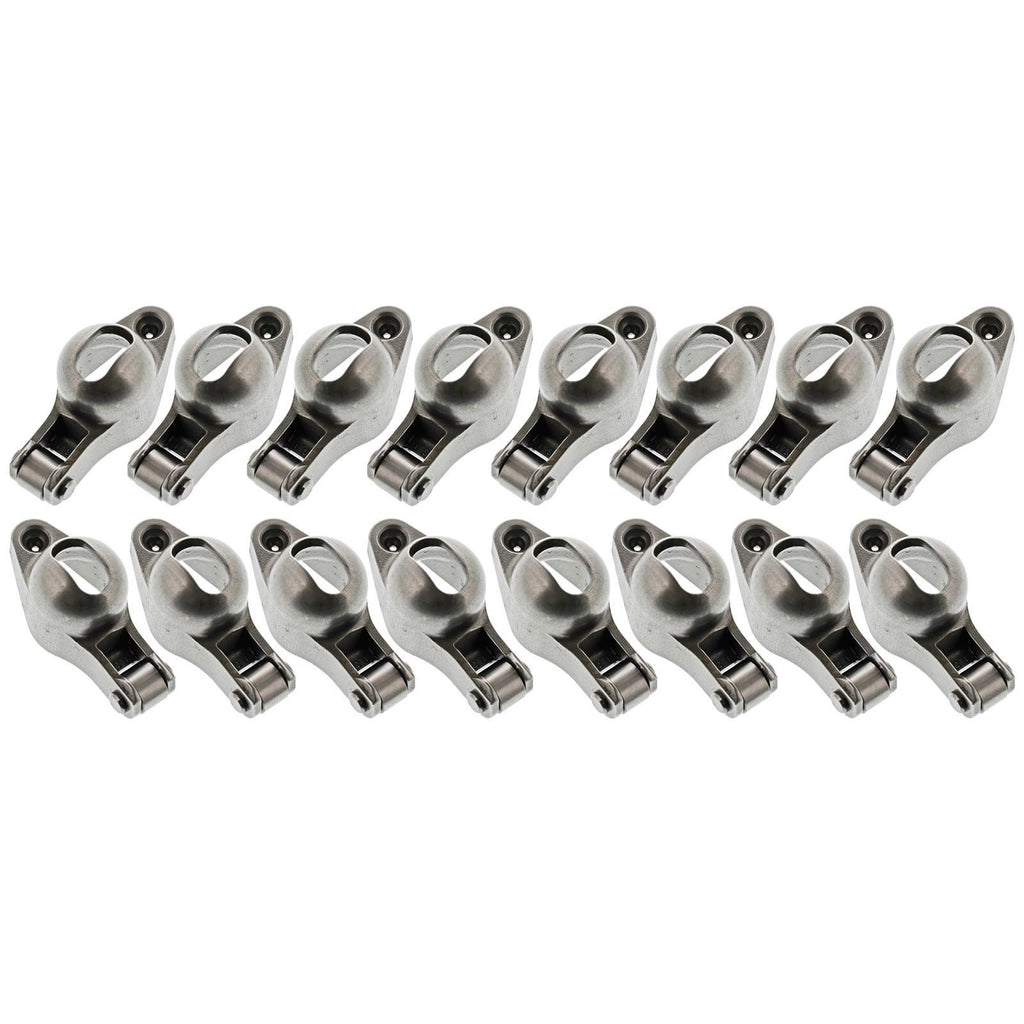 Rocker Arms, Stud Mount, Self-Aligning, Roller Tip, Steel, 1.52 , 3/8 in. Stud, Chevy, Small Block, Set of 16