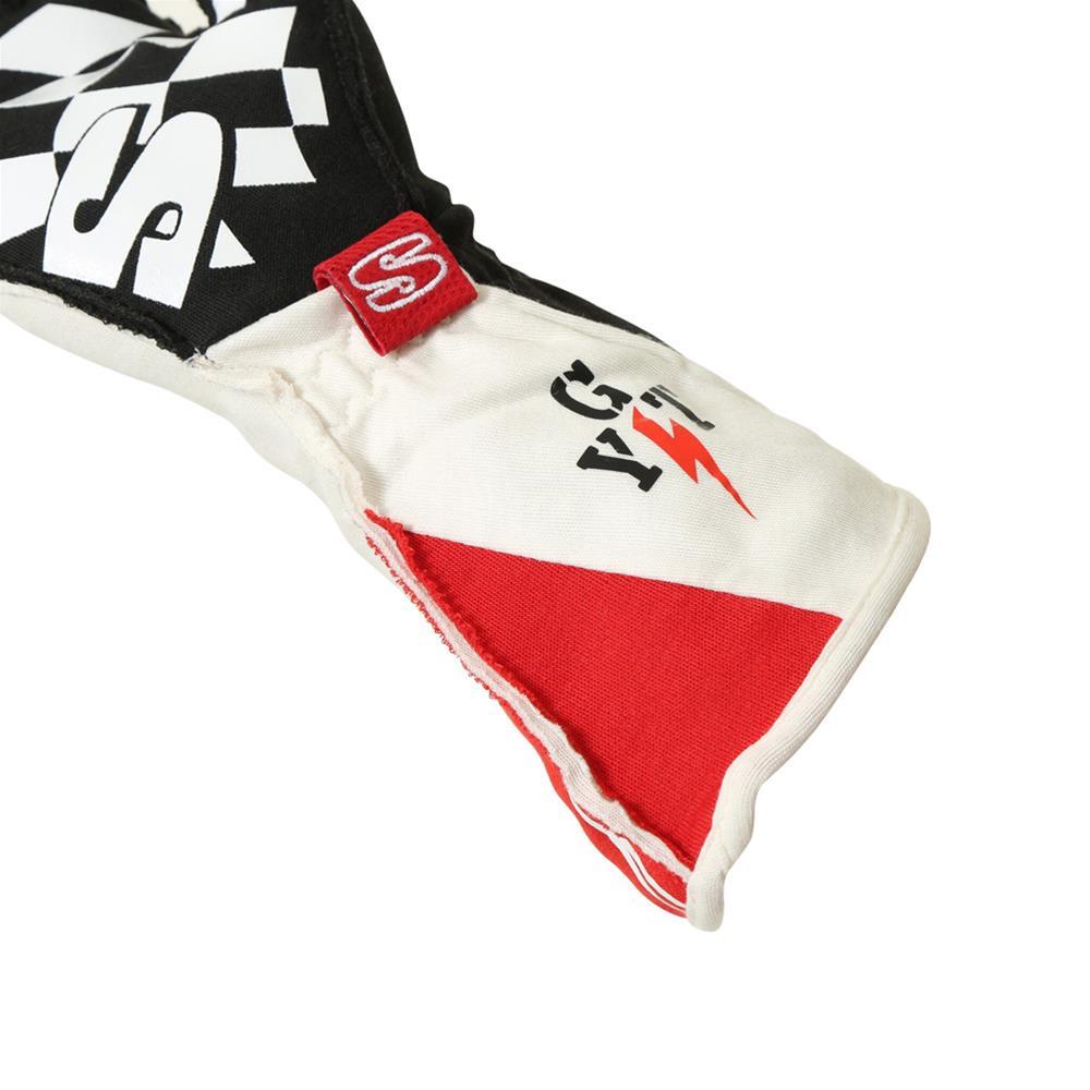Driving Gloves, Supercoil, Two Layers, Outer Seam Construction, Nomex, Black, White, Red, SFI 3.3/5, X-Large, Pair