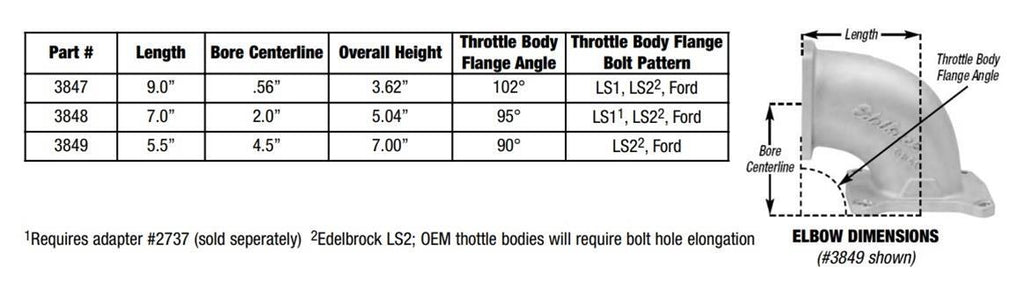 Edelbrock 3849 High Flow Intake Elbow For 95mm Throttle Body To 4150 Square-Bore Flange