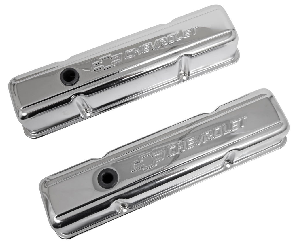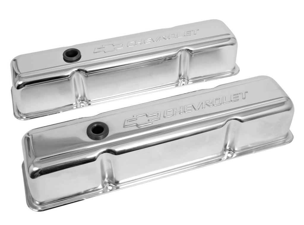Valve Covers, Tall, Steel, Chrome, Chevrolet Logo, Chevy, Small Block, Pair