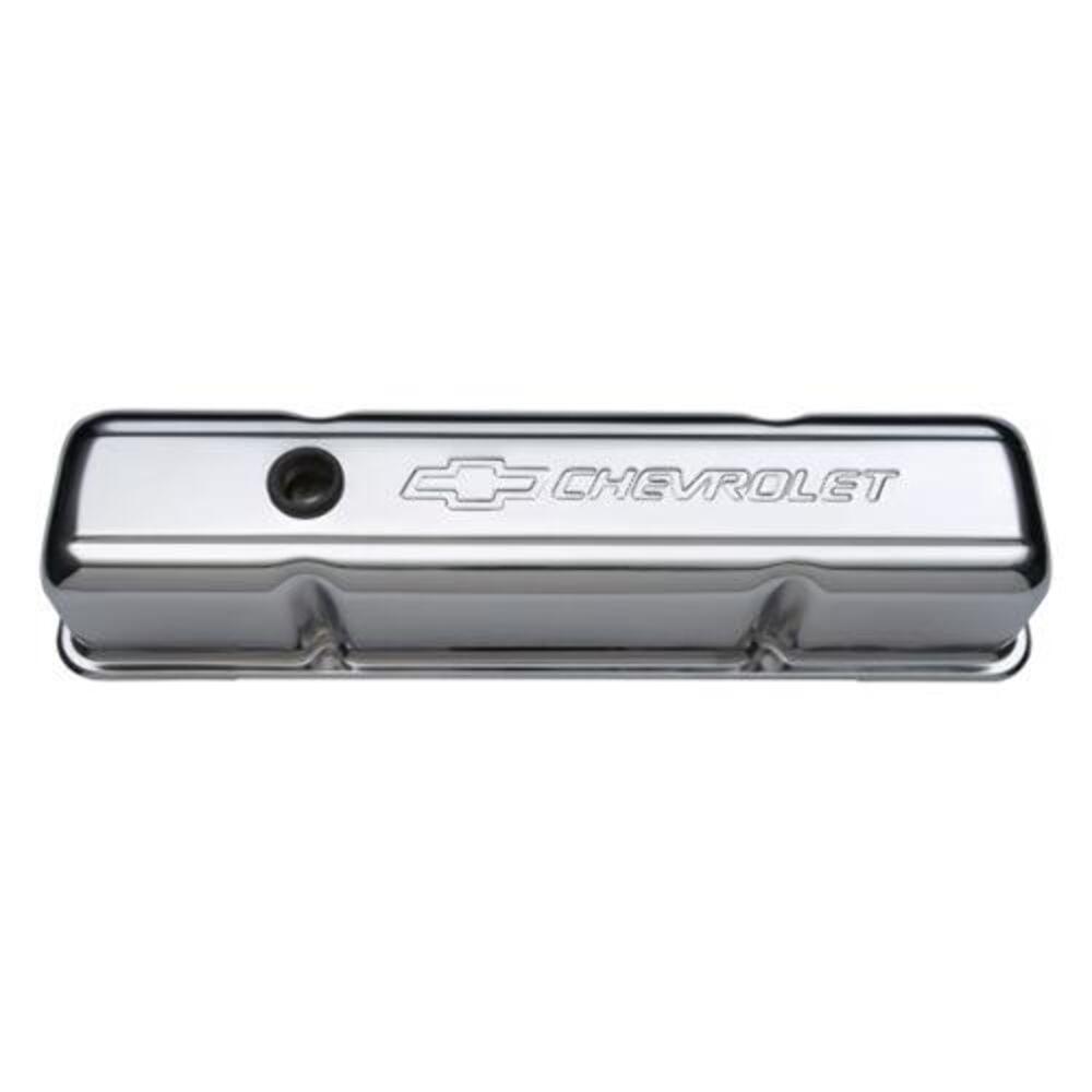 Valve Covers, Tall, Steel, Chrome, Chevrolet Logo, Chevy, Small Block, Pair