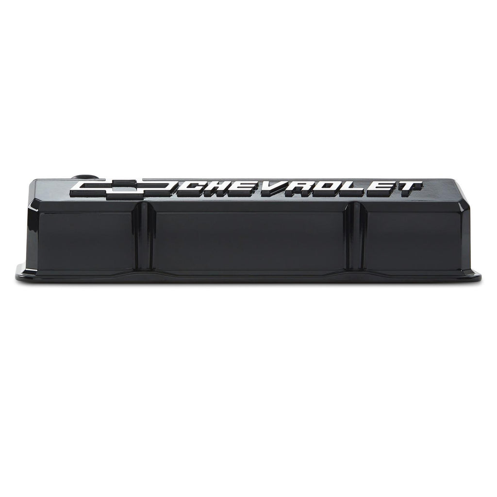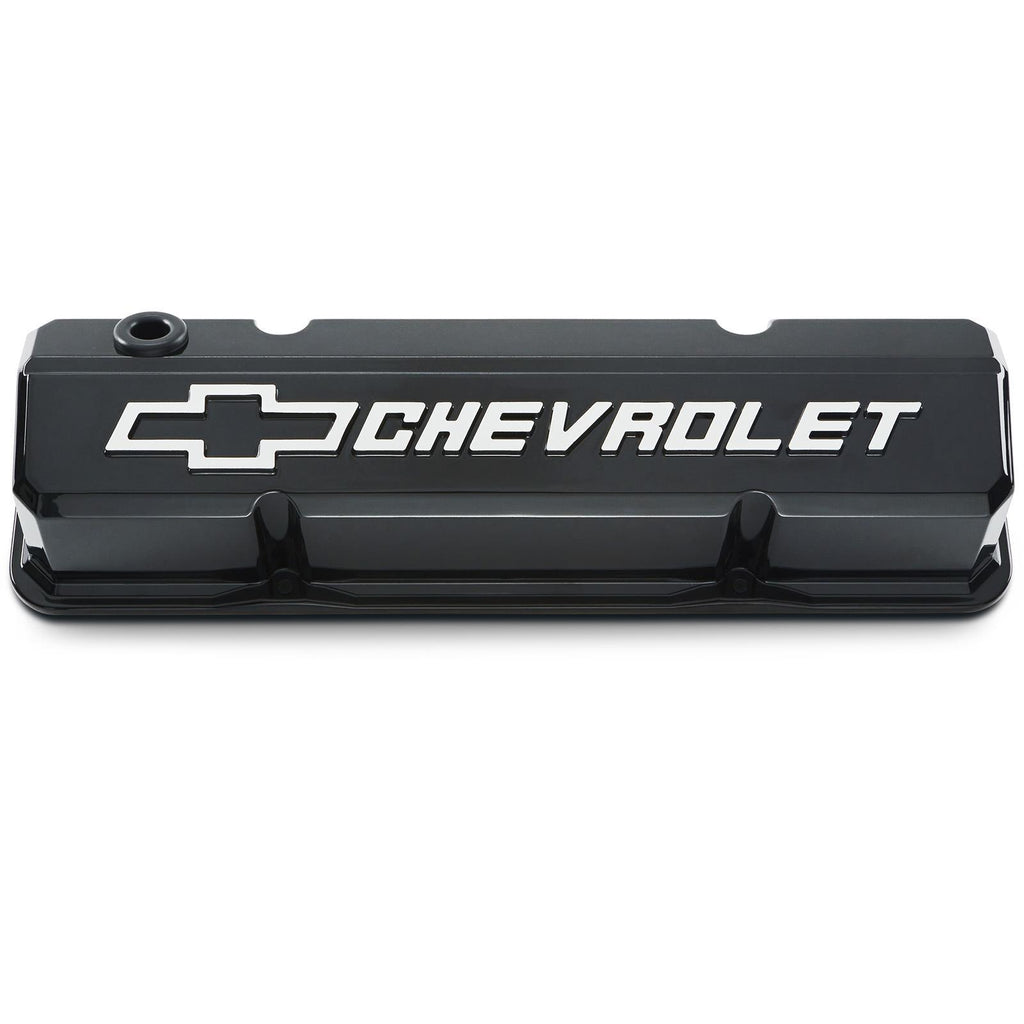 Valve Covers, Cast Aluminum, Black Powdercoat, Tall, Chevrolet, Bowtie Emblem, Chevy, Small Block, Pair