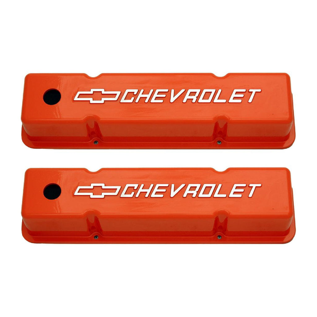 ALUM SB CHEVROLET LOGO TALL VALVE COVERS ORANGE