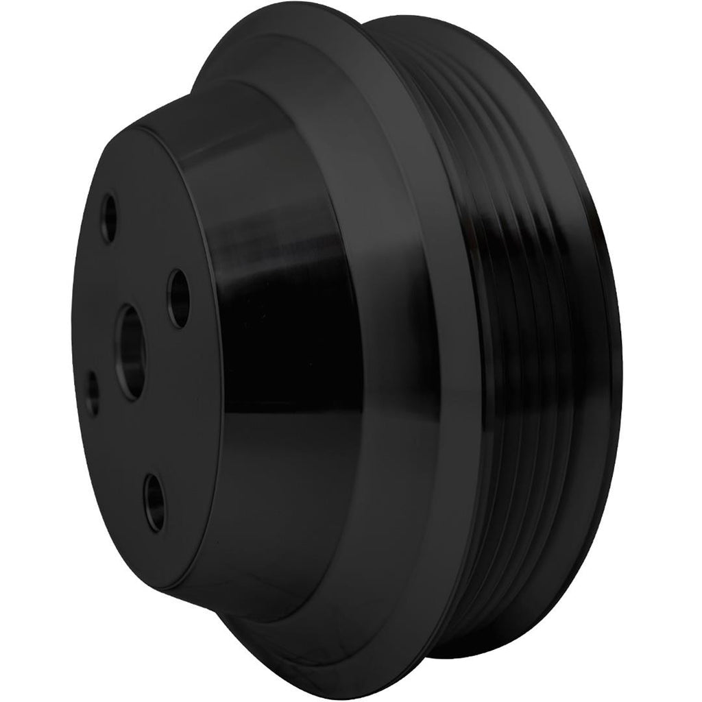 Water Pump Pulley, Serpentine, 6-groove, Billet Aluminum, Black Powdercoated, 5.250 in. O.D., Each