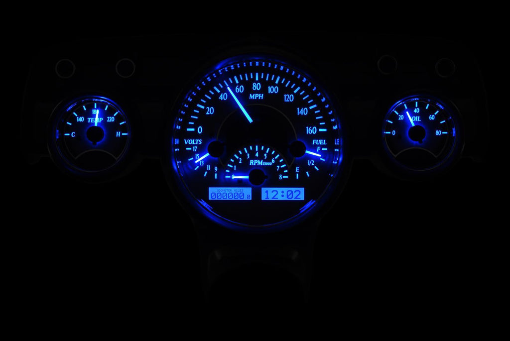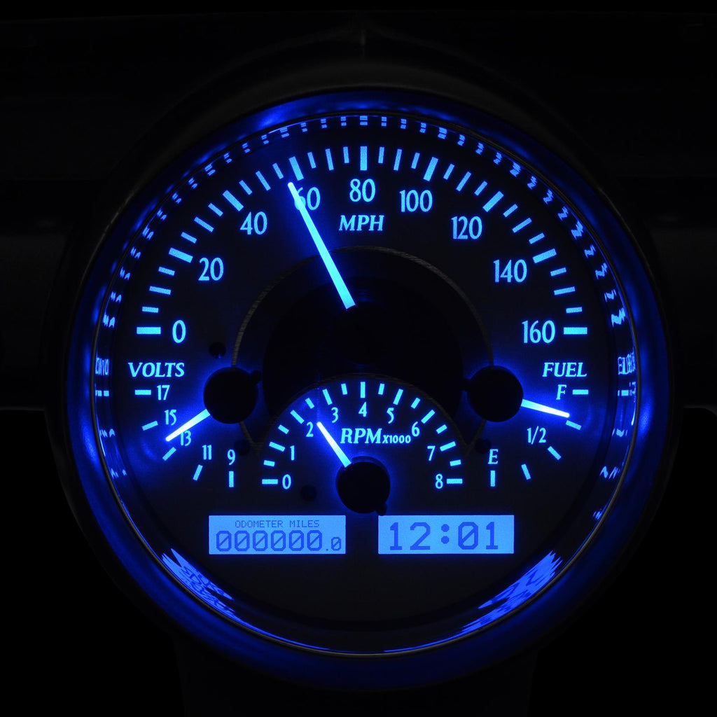 Gauge Kit, Direct Fit, VHX, Analog, Silver Face, Black/Blue Illuminated Numbers, White/Blue Illuminated Pointer, Chevy, Kit