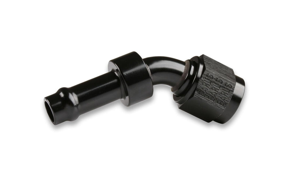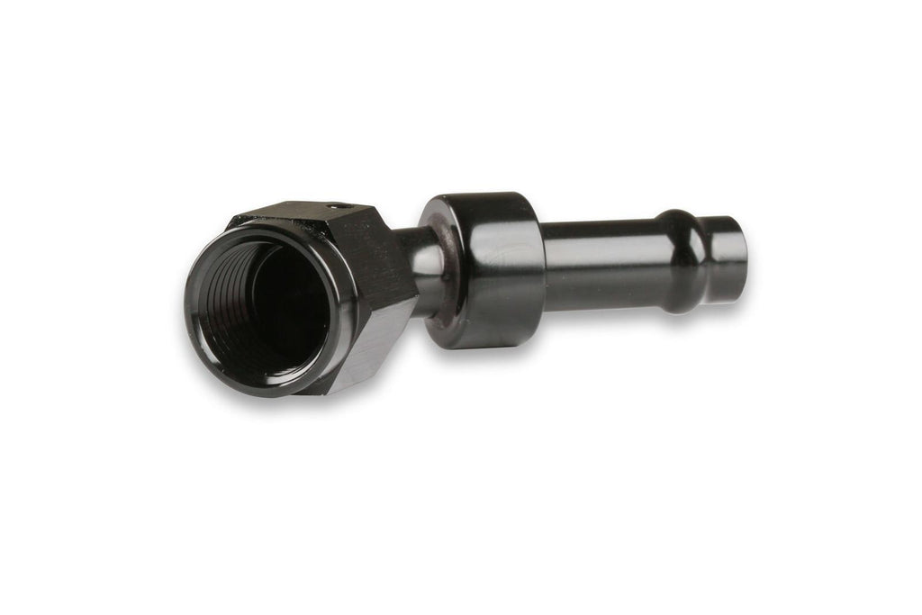 Hose End, Vapor Guard, 45 degree, 3/8 in. Size, Socketless Barb, -6 AN Female Threads, Aluminum, Black, Each