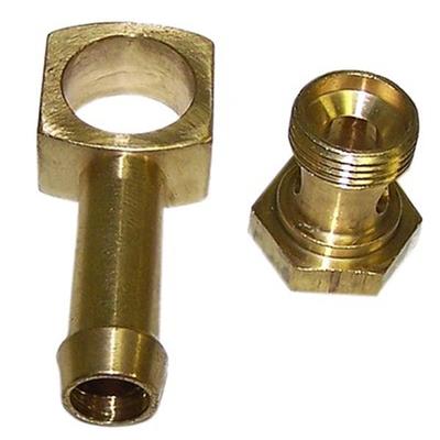 Fitting, Carburetor Inlet, Banjo, 3/8 in. Hose Barb to 9/16-24 in. Male Thread, Brass, Natural, Each