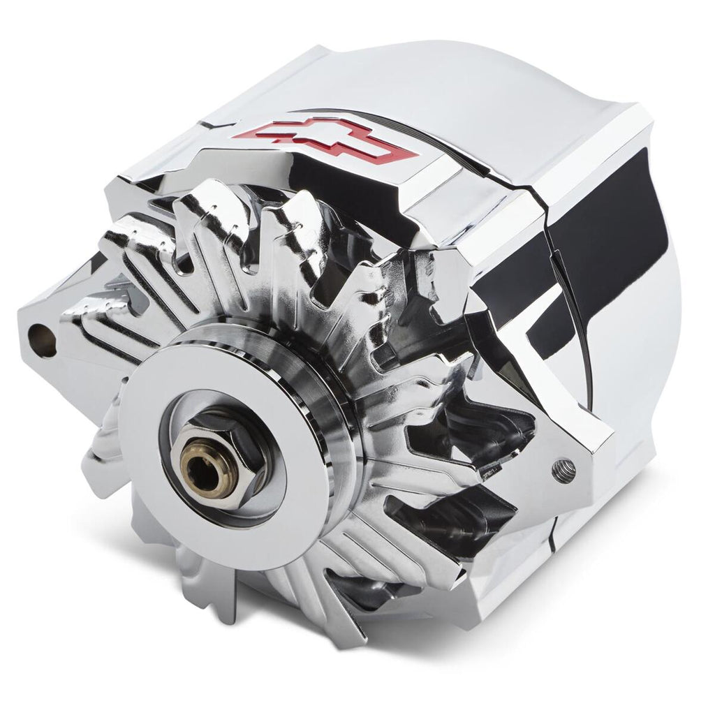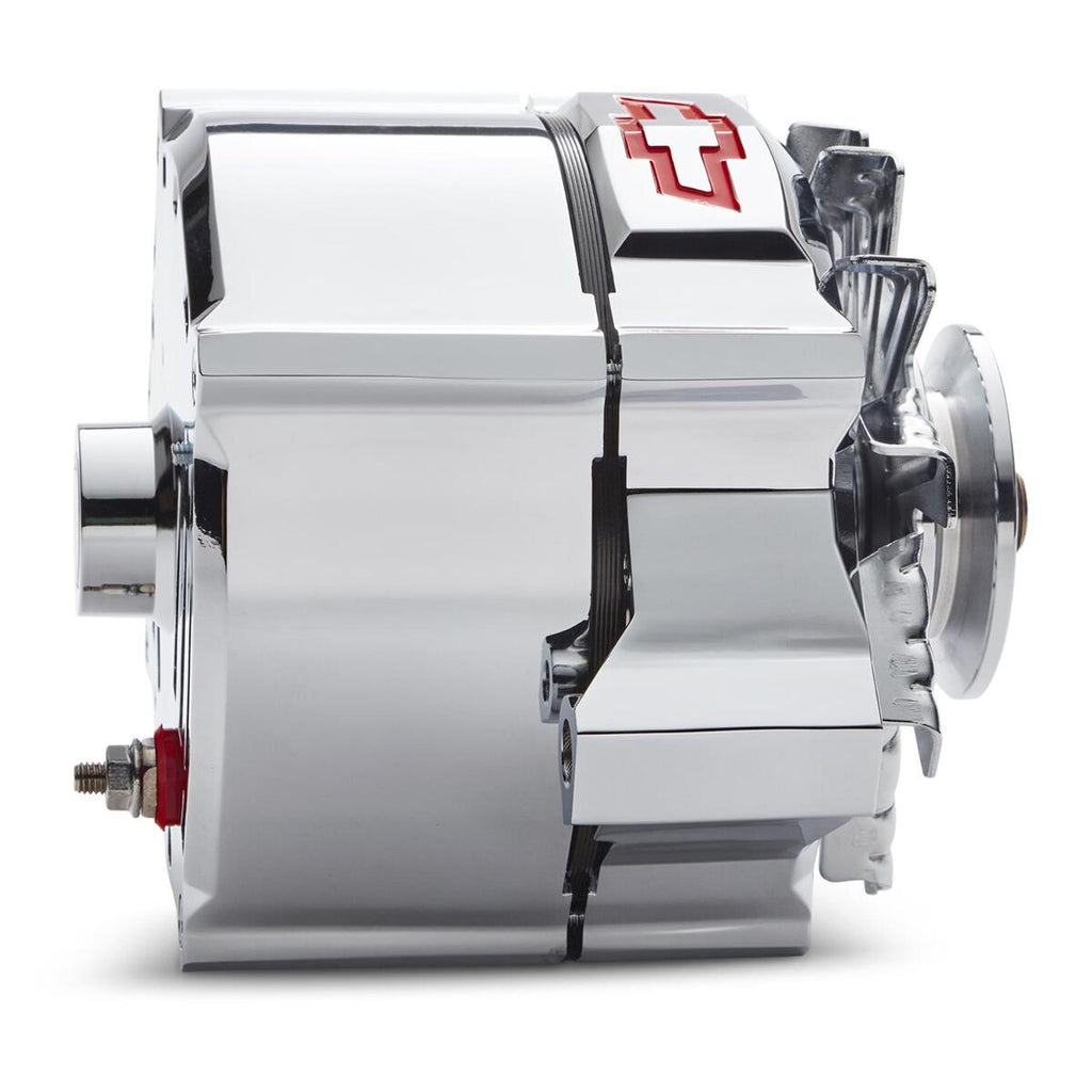 Alternators and Generators, Slant Edge Alternator, GM 10SI Case, Chrome Finish, 12V, 100 amp, 1-wire Hook-up, V-Belt, GM, Small/Big Block, Each